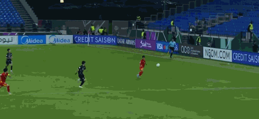 第20分钟,越南U23任意球被顶出,阮泰山抽射偏出