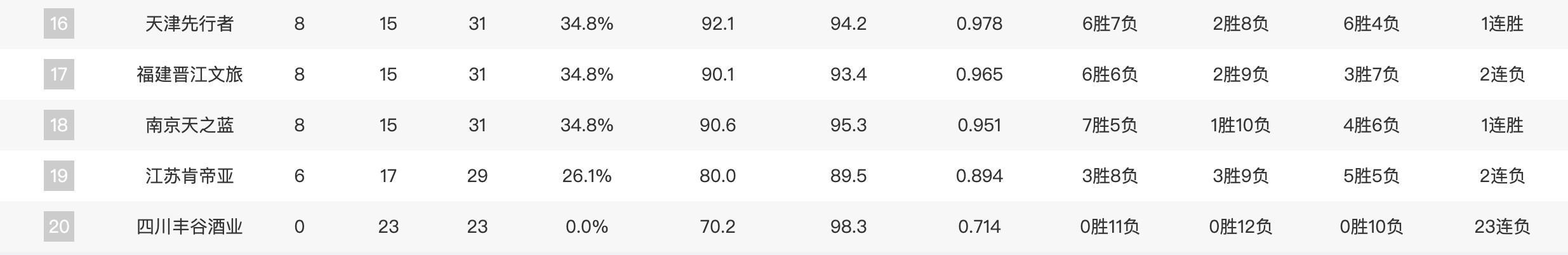 17.福建晋江文旅(8胜15负)
