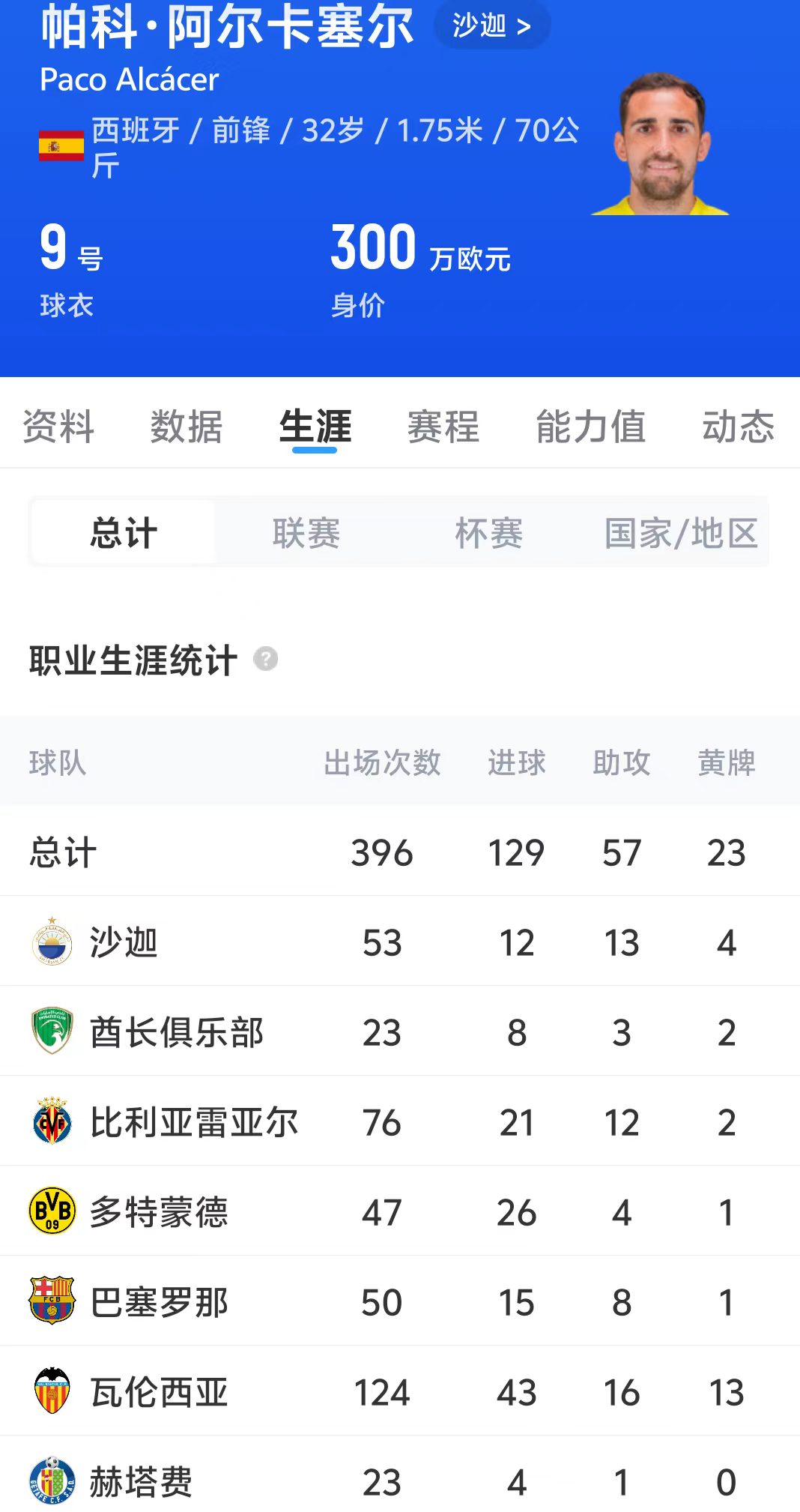 03月11日讯 每日体育报援引西媒Las Provincias报道,32岁的西班牙前锋帕科·阿尔卡塞尔退役。这位前巴萨球员于2025年7月以后,未加盟任何球队。该西媒表示,这位西班牙传奇前锋尽管仍收到多家国内外俱乐部的邀请,但已决定结束自己的职业生涯。此前,他曾与西甲阿尔梅里亚队传出转会绯闻,但最终未能成行。现年32岁的帕科职业生涯效力过瓦伦西亚、赫塔费、多...
